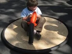 Pilot small personal hovercraft and become a human shuffleboard puck and help propel the pilots toward a target on the ground.